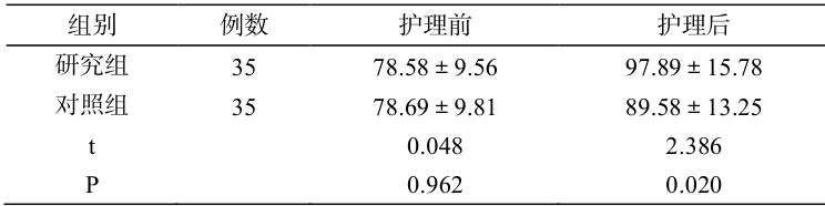 研究组生存品质评分高于对照组( P<0.05 )。见表 2。