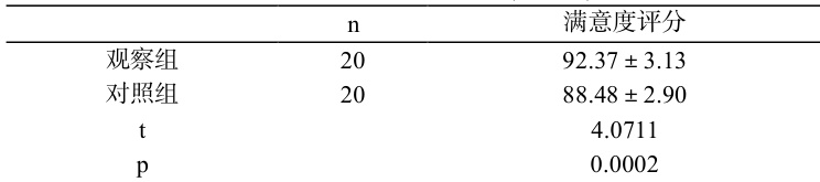 表 1 两组满意度评分对比(