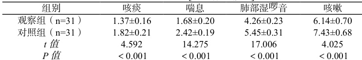 症状缓解时间:观察咳痰、喘息、肺啰音、咳嗽持续时间。