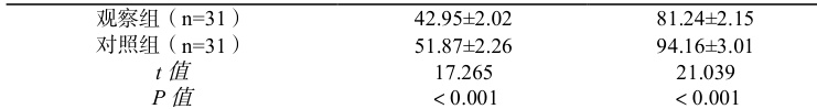 选取 2022 年 5 月~2024 年 12 月本院收治的 62 例 COPD 病例回顾研究,根据随机数表法为对照组、观察组各 31 例。其中观察组男 21 例、女 10 例,年龄(50~84)岁,平均( 68.55±9.99 )岁。对照组中男 19 例、女 12 例,年龄(52~83)岁,平均(67.45±8.69)岁。两组患者基线资料相近,可比较(