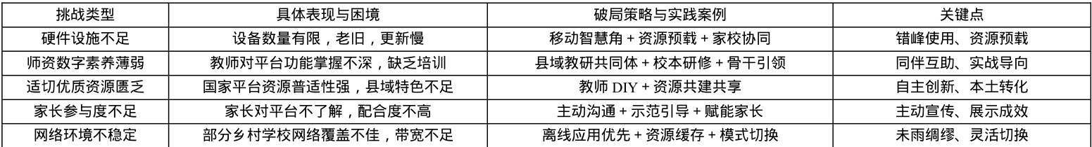 实践过程中,已突破初期“为用而用”的误区,形成四大核心经验:工具选择与活动设计要紧扣教学目标与学情;将国家平台资源与本土语境深度融合,激活学习内驱力;县域教研共同体通过骨干先行、经验共享实现协作成长;以开放心态应对硬件、网络等挑战,坚定前行信心。