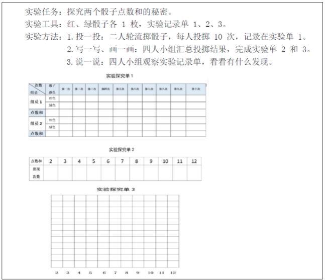 探究单用于课中辅助教学,聚焦核心任务,助力学生深度学习。设计时需明确任务要求,提供导读或提示,以帮助中下水平学生理解任务,同时为优等生提供拓展资源。探究单可设计为侧重于解题方法练习的类型,或侧重于培养学生比较、分析和评价等能力的辨析单,帮助学生逐步掌握学习方法,提升核心素养。例如上面提到的五年级数学《掷一掷》一课,设计如下探究单: