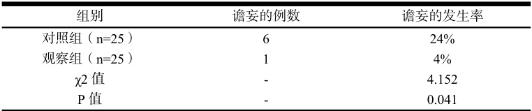 通过表 2 得知,观察组术后谵妄发生率( 4% )远低于对照组( 24% ), P<0.05AA