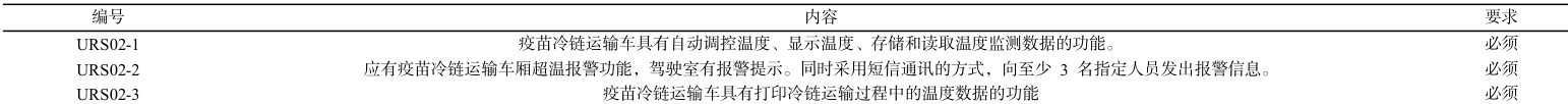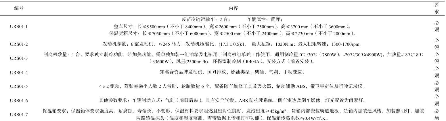 疫苗冷链运输车的主要作用为保障疫苗运输环节的温度控制在 2-8℃范围内。用户需求文件总括了用户对疫苗冷链运输车的质量要求,也描述了用户对疫苗冷链运输车的工作过程及功能期望。要点如下:
