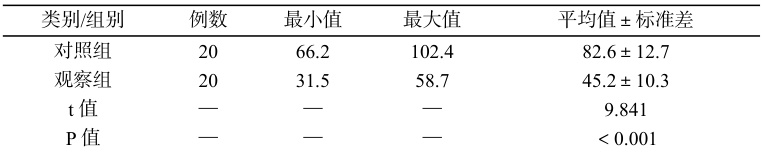 本研究选取 2024 年 1–12 月我院 40 例产后尿潴留患者,随机分为对照组和观察组,各20 例。对照组年龄 22~36 岁,平均( 28.40±3.21 )岁;观察组年龄 23~35 岁,平均( 28.15±3.44 )岁。两组产次、分娩方式等基线资料比较差异无统计学意义(P>0.05 ),具有可比性。