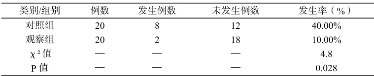 表3:两组干预后尿潴留发生率比较