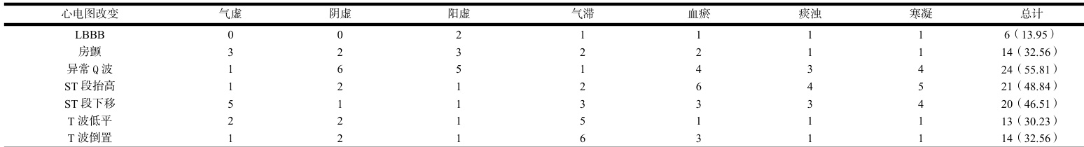 2.2 心电图改变与中医辨证分型的关系分析