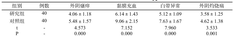 (1)对比两组患者各项症状消失时间,主要包括外阴瘙痒、黏膜充血、白带异常、外阴灼烧痛;