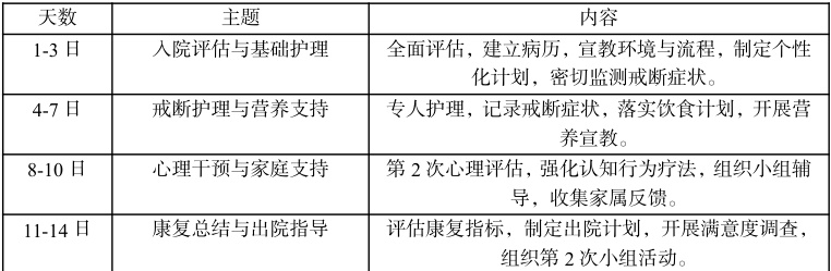 末期(11-14 天):评估康复情况,提供出院建议,开展匿名满意度调查。