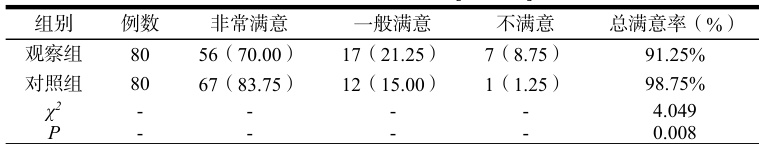 观察组手术团队满意度( 98.75% )显著高于对照组( 91.25% )( .P<0.05.
