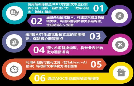 技术原理:运用 NLP 技术,包括语义理解、知识图谱、机器翻译等,对党报中的复杂内容进行处理。将专业术语、政治理论转化为通俗易懂的语言。
