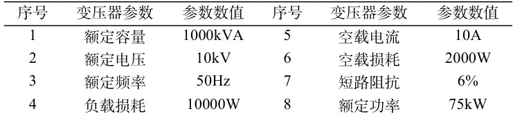 实验选择电力系统中的三相变压器作为被测试设备,该设备的具体参数如表 1 所示。
