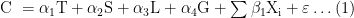 式中C 表示总造价,T、S、L、G 分别代表技术复杂度与建筑规模及地理因子以及绿色等级,Xᵢ为其他影响
