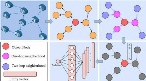 模型层部署图神经网络算法,用邻域聚合方法提取节点隐藏特征。在空间方面,聚合多个层级邻居风险状态;在时间方面,引入序列模型来捕捉企业行为变化因此建立一个结合时间以及空间特征风险传导预测模型。