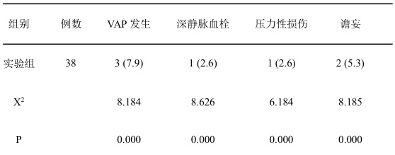 记录两组患者呼吸机相关性肺炎、深静脉血栓、压力性损伤、谵妄等常见并发症的发生情况。