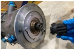 为此,航空公司派出自己的机务维修人员前往该机场执行排故,排故时拆下右发起动机,发现起动机的驱动轴已经脱开,同时发现该起动机的壳体发生破裂,如图 1-2 所示,正常状态见图 3。维修人员更换了起动机后故障排除,机组成功启动发动机继续执行后续航班。该起动机后续被送修分解,发现其内部转子(Seal Rotor)已经发生了位移(图 4 所示)。