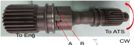 起动机驱动轴(ATS)端的细轴通过着力面(平面 A)传递周向力,带转发动机(ENG)端的粗轴顺时针旋转(如图 6 所示)。