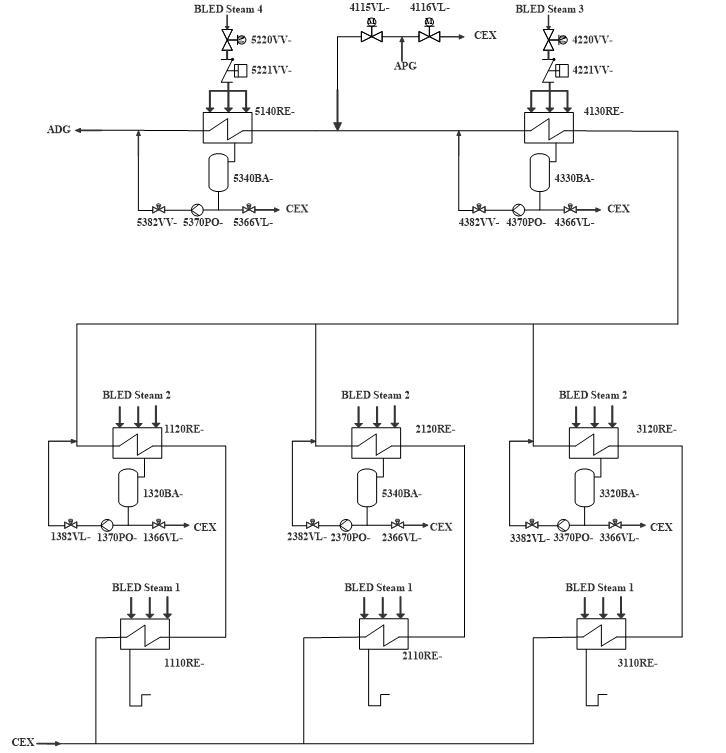 APG 系统冷却疏水在大于90°C 小于160°C 时排放到3、4 号低压加热器之间的管线上。