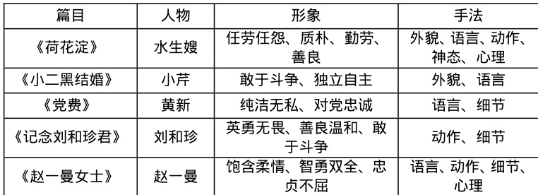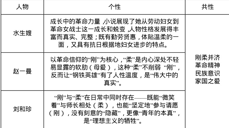问题4.比较阅读:水生嫂、赵一曼和刘和珍的共性与个性。完成表格。