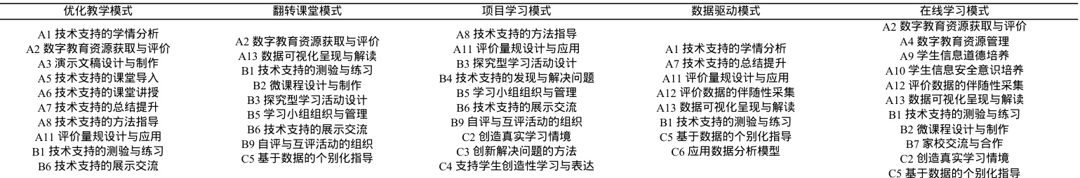 为准确定位能力点实施和信息化教学提升,全国“2.0工程办”推荐了如表2 所示五种不同信息化教学模式下的能力点选择方案[2]。