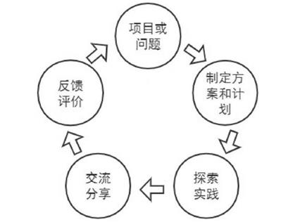 项目式学习模式作为发现式学习中的一个重要代表模式,也在 20 世纪学校教育领域得以蓬勃发展[4]。在项目式学习过程中,学生的学习任务往往始于一项具体任务,并最终以项目产品作为主要的学习成果建型。这能够帮助学生们在学习过程中变得更加客观,更加积极地将课堂中所学到的知识应用到实际解决问题的过程之中,使得课堂知识更加具有意义。项目式学习流程的常见模型如图 1 所示。