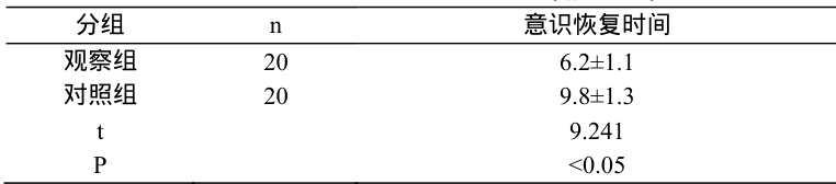 观察组意识恢复时间短于对照组,差异均有统计学意义( P<0.05) 见表 2