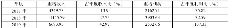表1 紫晶存储2017 至2019 年虚增收入和利润情况(单位:万元)