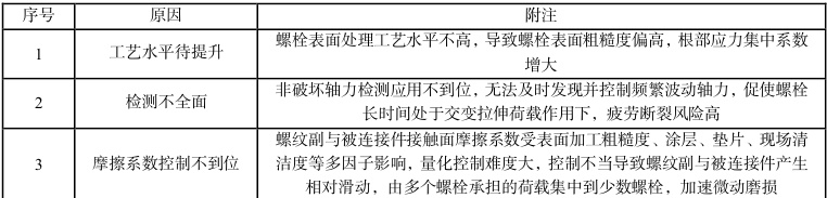 由表 2 可知,压缩机高压端盖螺栓拉伸断裂失效原因包括工艺水平不高、检测不全面、摩擦系数控制不到位等。在明确压缩机端盖螺栓拉伸断裂失效的原因后,项目人员可开展针对性改善,从根本上规避类似故障的出现。
