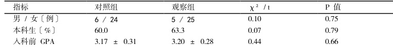 2.1 基线比较两组性别、学历、GPA 等差异无统计学意义。