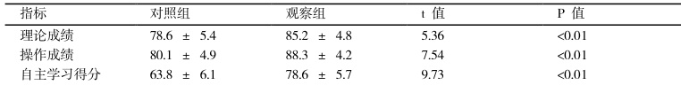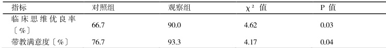 观察组理论、操作及学习能力评分均显著高于对照组观察组临床思维优良率及满意度显著高于对照组。