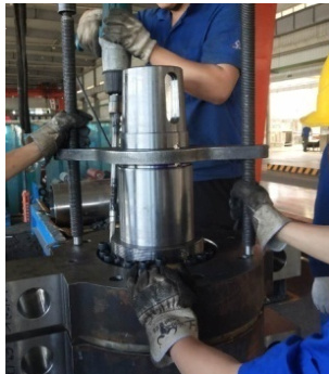 该压紧装置适用范围广泛,可通过调整螺栓长度或压紧盘螺栓孔中心距,适应企业内多种规格破碎轴组的组装需求。目前该装置已在实际生产中广泛应用,表现稳定、可靠(现场应用情况参见图 5)。