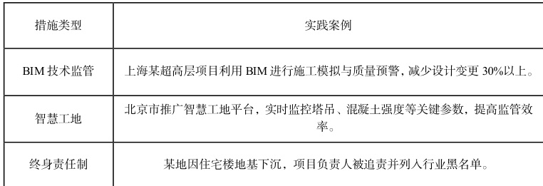 总之,建筑工程质量管理的提升离不开全方位的监管措施和多方协同合作,只有通过各方共同努力,才能确保工程质量达到预期目标,保证建筑项目的长久安全与可靠性。