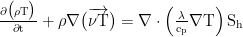 其中,T 为温度,λ为传热系数,cP 为比热容,Sh 为能量源项。