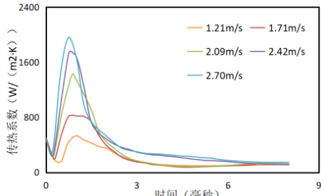 图1 不同速度液滴撞击壁面换热系数图