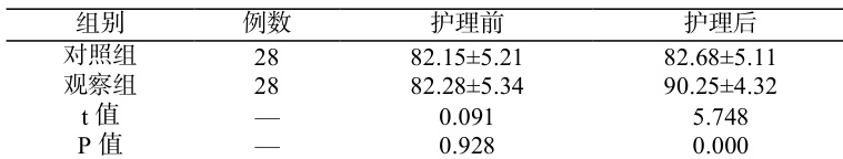 对两组患者的皮肤状况评分进行统计,结果见下表 2 所示:表 2 两组患者护理前后的皮肤状况评分