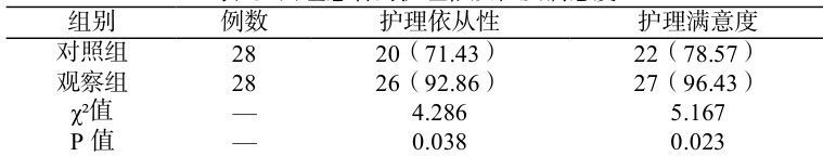 表 3 两组患者的护理依从性及满意度