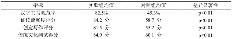 选取 600 名青少年分为实验组(采用该模式)与对照组(传统教学),通过实践验证其效果。时间:16 周(每周汉字工作坊 1 次、音疗诵读角 1 次、艺术创作团 2 次,每次 90 分钟)地点:2 所中学、1 所青少年活动中心(设置专用教室,配备书法工具、音响设备、绘画材料)分组:实验组 300 人,对照组 300 人(采用传统语言教学,如课堂讲授、课后作业)