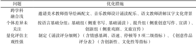 “三位四维”协同实践模式通过汉字工作坊、音疗诵读角、艺术创作团三大载体的联动,有效解决了青少年语言素养培育中的实践难题。实践表明,该模式能显著提升青少年的语言基础、语感表达、创造性运用与文化传承能力,且具有较强的可操作性与推广价值。后续进一步扩大实践范围,结合不同地区文化特色优化活动内容,推动青少年语言素养培育常态化、实效化。