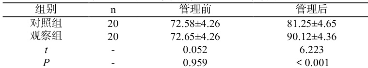 管理后,观察组心理素质评分高于对照组( P<0.05 ),见表 1。