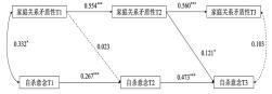 ,如图 1 所示, T2 家庭关系矛盾性能够正向预测T3 自杀意念。