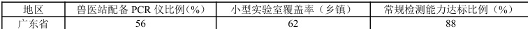 为提升基层检测能力,广东省推动有条件的乡镇兽医站建设小型标准化实验室。例如,肇庆市怀集县2022年完成 5 个乡镇兽医站实验室升级,新增自动离心机、荧光PCR 仪、恒温培养箱、生物安全柜等检测设备,并配套建设样本处理间和洗消间,实行标准化管理制度和定期培训制度。2023 年,该县基层实验室共完成猪瘟、蓝耳病、禽流感等疫病样本检测4608 份,其中阳性检出率为 1.13% ,为早期预警和精准防控提供了有力支撑。