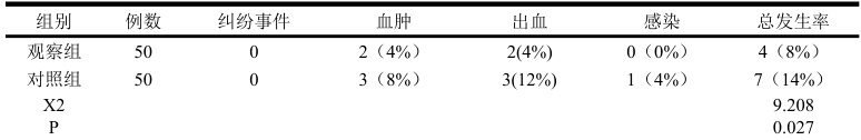 本研究中,两组均无纠纷事件发生。不良事件发生率方面,观察组总发生率为 8% ,显著低于对照组的 14% 发生率。差异具有显著性, (p<0.05),