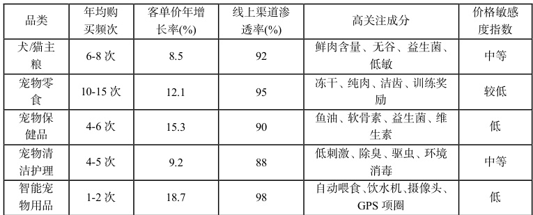 基于海量电商交易与用户行为日志的大数据分析,揭示出当前宠物主消费行为呈现以下显著特征[2]: