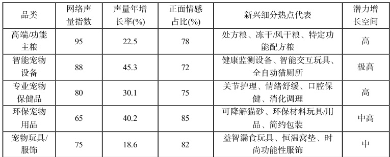 表 2:主要宠物品类热度及增长趋势分析