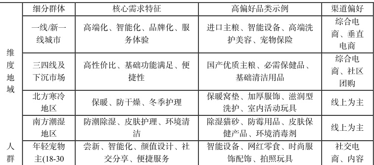 表 3:不同地域/人群宠物产品需求特征差异