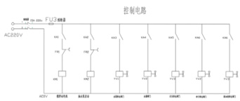 控制电路主要控制搅拌站电机、抽水泵的启动以及五个阀门的开关闭合。输出控制继电器起到间接控制阀门的作用,FU3 为熔断器,对控制电路进行保护。通过 PLC 的输出点控制继电器线圈的通断,进而控制阀门的开关和电机的启停。