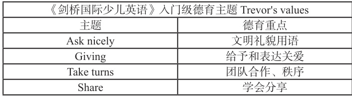 表 1 《剑桥国际少儿英语》入门级德育主题