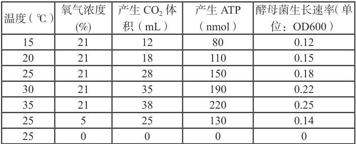 表1:不同条件下酵母菌细胞呼吸实验的气体产物测量数据