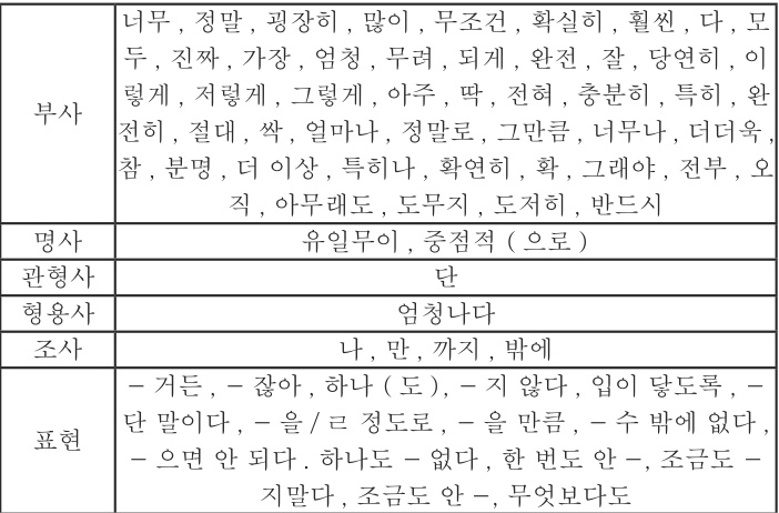 增强语可以帮助说话者强调访谈中的重点内容。例如,“매우(非常)”“완전히(完全地)”等词语。当嘉宾在访谈中想要突出某个观
