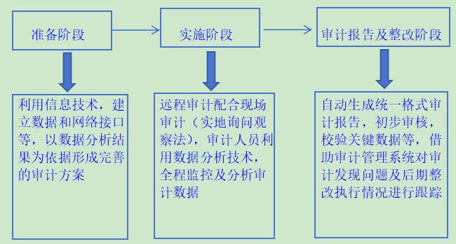 国有企业引入信息化技术到内部审计过程中,如图 1 所示,需要整理并完善原有内部审计流程,对其进行改造,使之适合新的内部审计要求 [4]。此期间可以利用并行的方式对不同的业务范围或数据分区开展审查工作,并汇总各审查组的研究成果,进而压缩审计时间。同时,要做好审计的全过程管理,可以在审计信息系统中设置质量控制节点,对审计作业过程开展实时监控与复核,以确保全部的审计活动达期的预定质量。